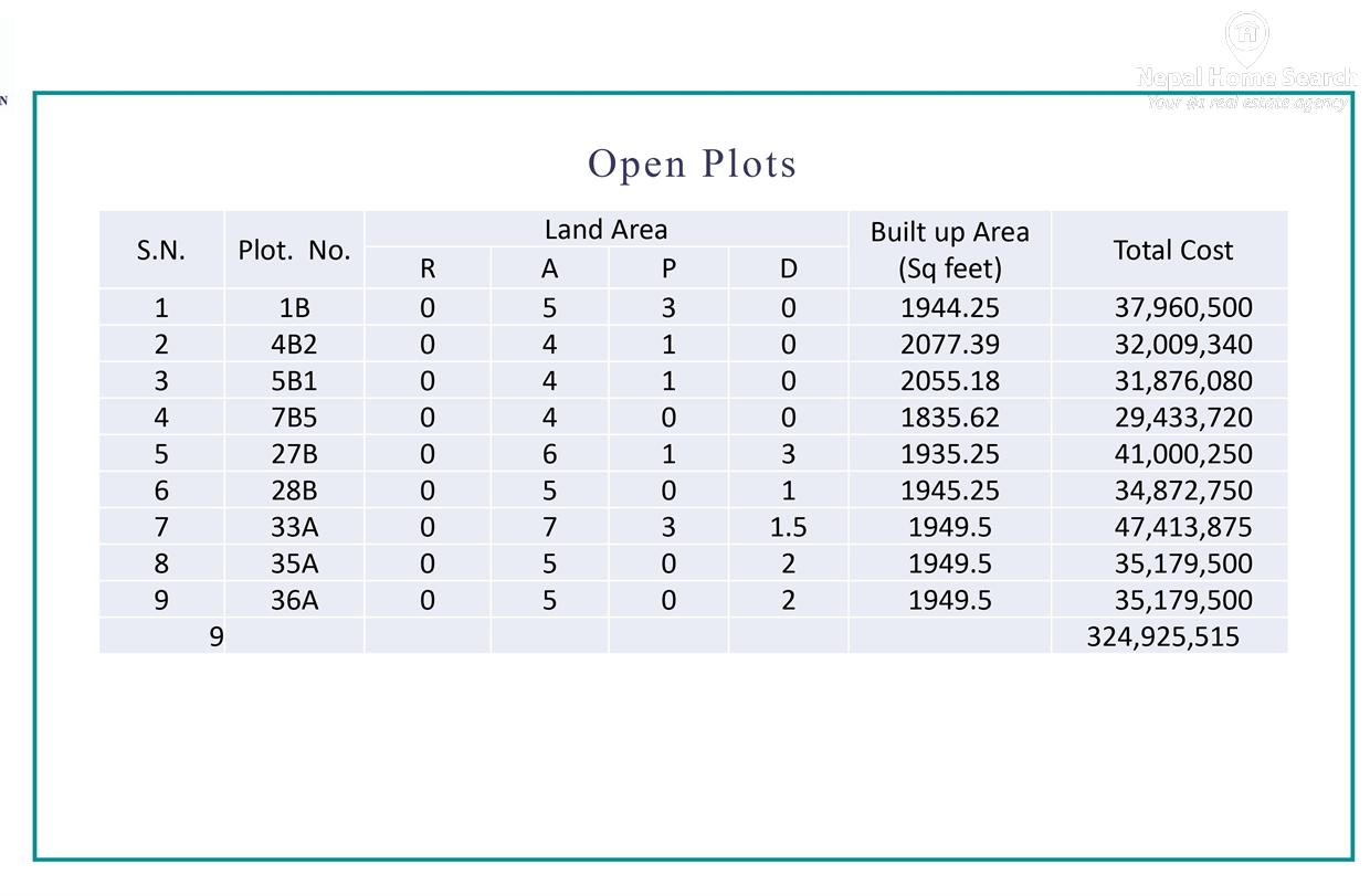 Homes start at NPR 29,433,720, with a range of land sizes and built-up areas to choose from.