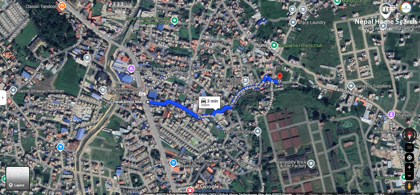 ✅ 550m (3 min walk) from Satdobato-Godawari Road